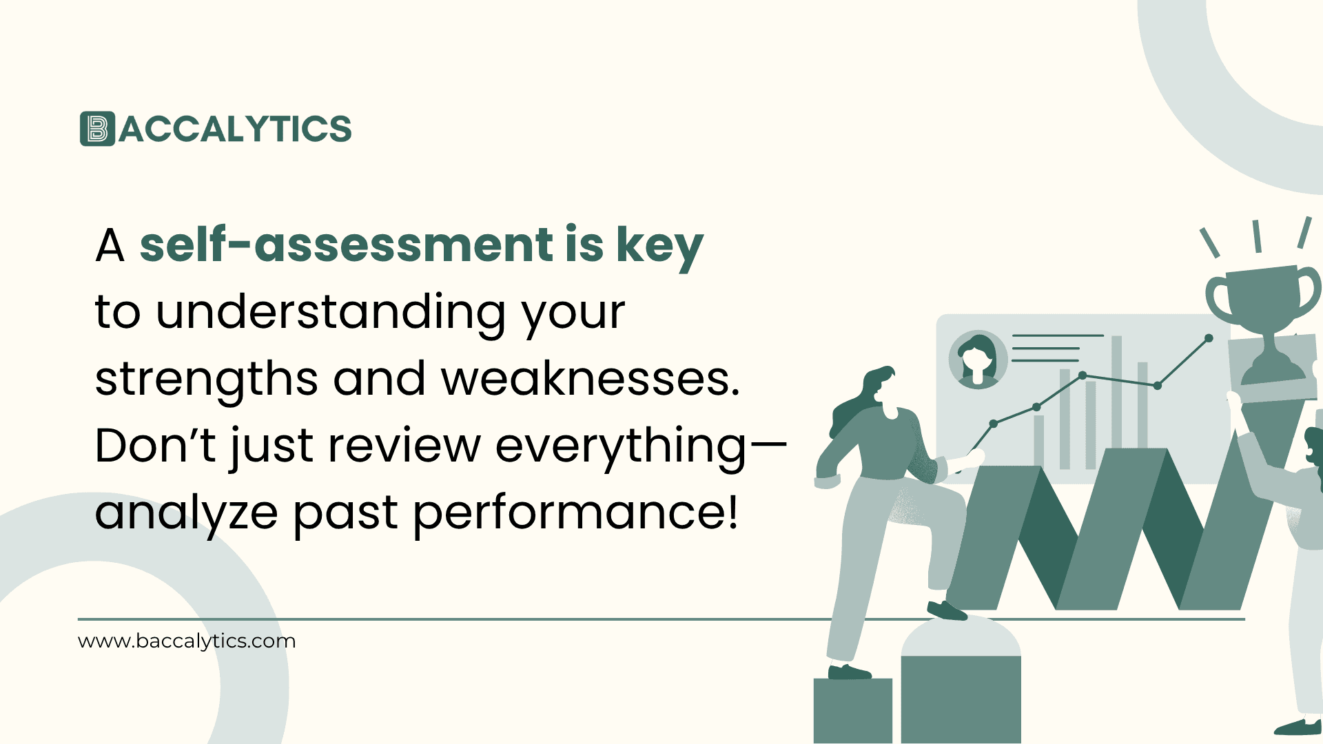A self-assessment is key to understanding your strengths and weaknesses. Don't just blindly review everything. Analyze your past performance: